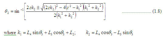 Equations 1.6, 1.7 and 1.8 together make up the joint configuration of the robotic arm to locate the gripper at a particular point in space.