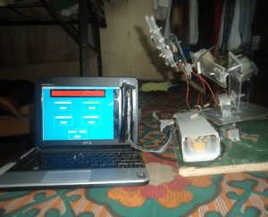 The software used to control the robotic arm was written using the Visual Studio C Sharp(C#) platform. The software interface basically consists of a status bar, five control boxes each of which corresponds to an individual motor of the robot and contains buttons for its control, and a black pane at the right end of the screen. The veroboard containing the LDRs is attached to this side of the screen on this black pane. When a button is clicked in any control box, a corresponding white box flashes and this signal is picked up by a particular LDR and goes directly into the electronic circuit as stated above. Appendix A shows the written code. Figure 1.2 shows the interface.